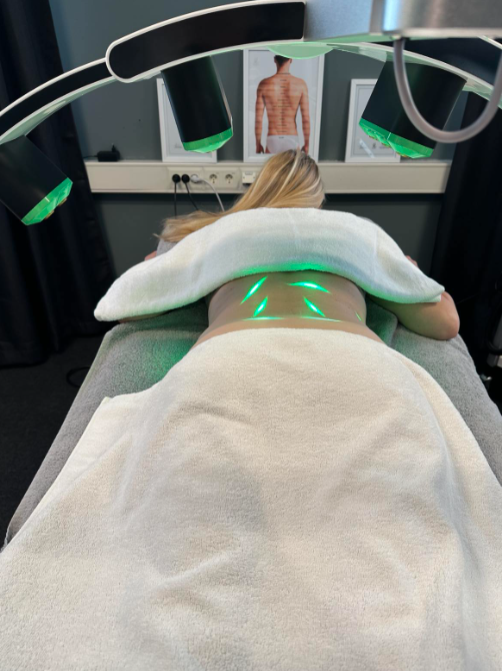 Etter grønn laser må man ha en lymfedrenasje. Her bruker vi Vacusport trommelen. For optimale resultater anbefaler vi et behandlingskurs på minst seks økter. Effekten av behandlingen kan variere fra person til person, avhengig av individuelle forutsetninger og målsetninger.